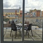 Our Annexe building at 33 St Giles, at two minutes’ walk from Blackfriars Priory, includes a student accommodation flat on its 3rd floor provisioned with four en-suite bedrooms.  This is a modern construction completed in 2019 and includes a shared kitchen and living space, and an outdoor terrace with a wonderful view of North Oxford and Radcliffe Observatory.